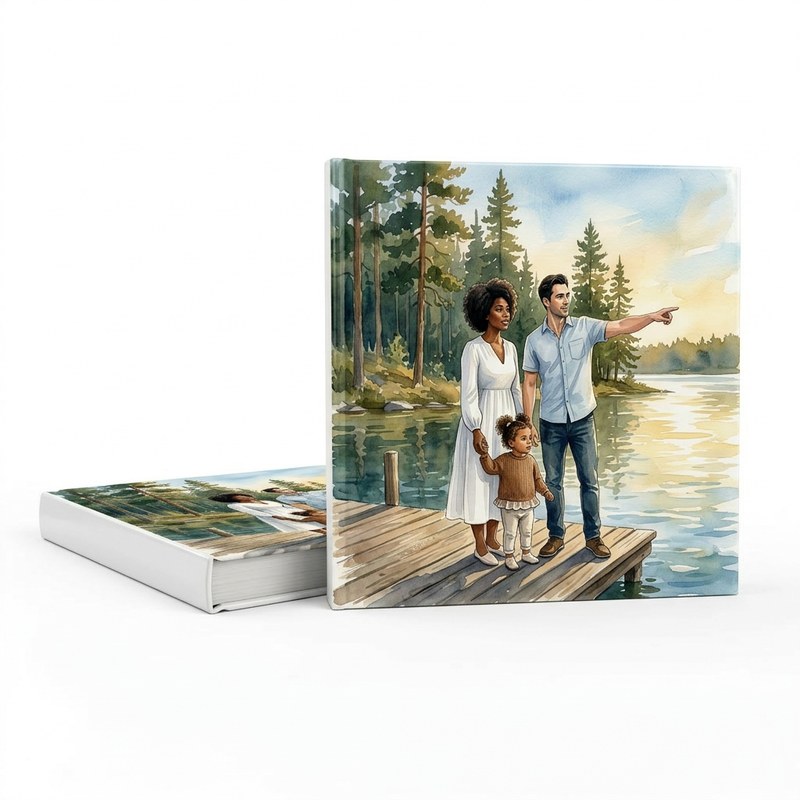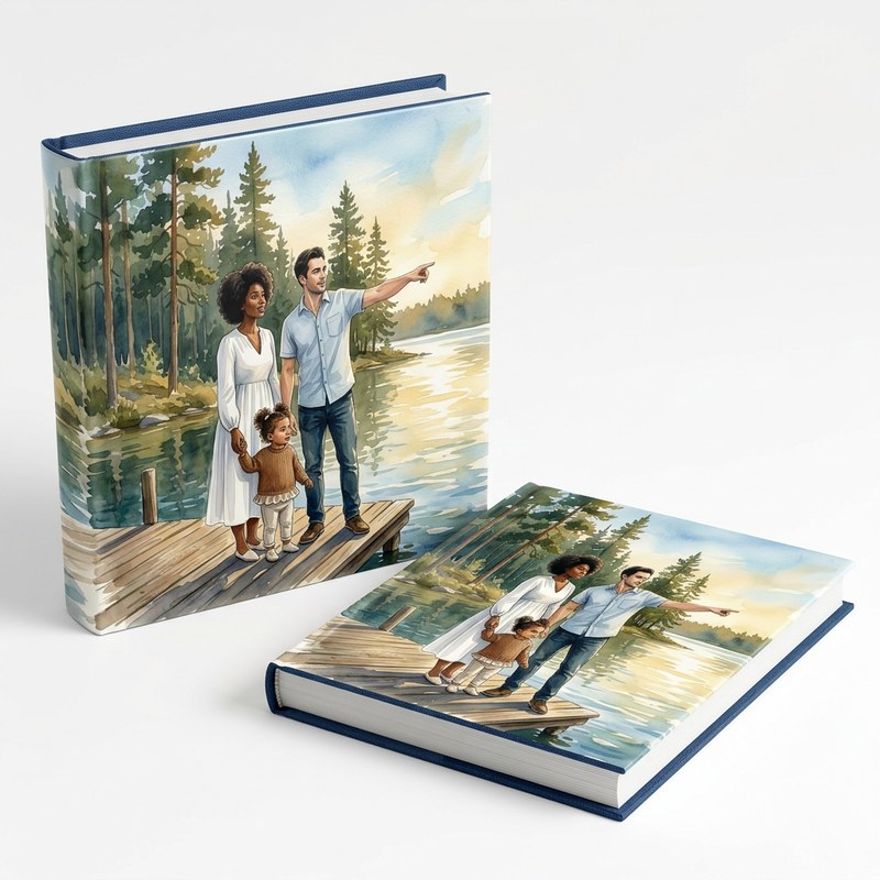 A rigid casewrap hardcover with your cover artwork printed directly on the boards. Available in glossy or matte finish. Durable, vibrant, and built to last — the kind of book that lives on the shelf for years.