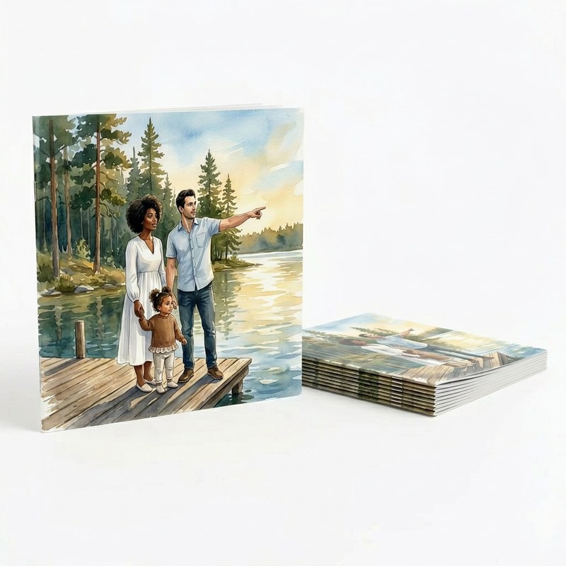 A lightweight, staple-bound book with a flexible glossy or matte cover. Perfect for everyday reading and sharing. The classic picture book format — thin, easy to hold, and great for little hands.